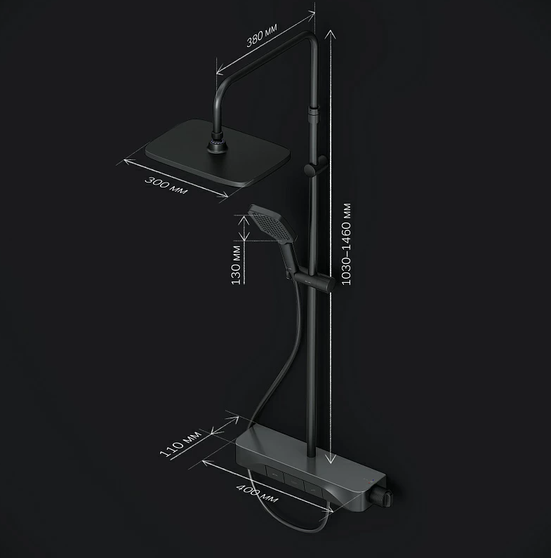 Душевая система AM.PM Func F078F222 стойка с тропическим душем, термостатом, смесителем, черная AM PM