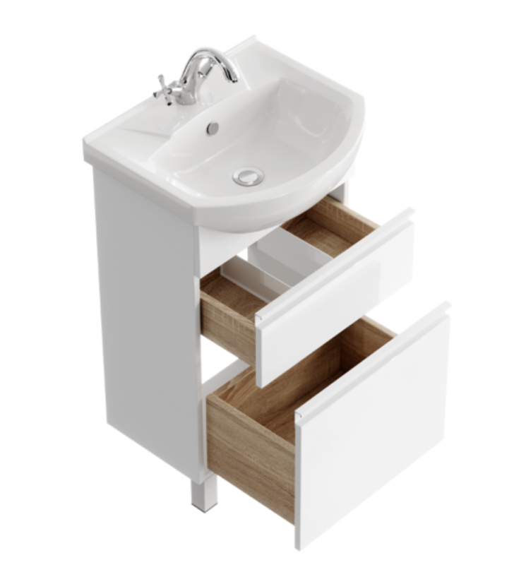 Тумба Rodos T5/2н напольная, цвет белый + рак. Элеганс 50 Aqwella