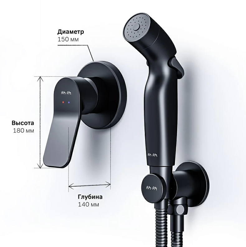 Смеситель с гигиеническим душем, AM.PM X-Joy F40H85A22 С ВНУТРЕННЕЙ ЧАСТЬЮ, черный AM PM